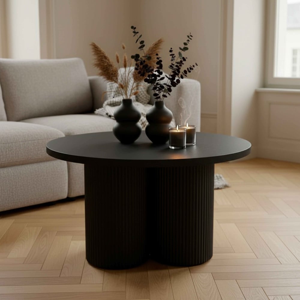 Skandinavischer runder Couchtisch 80 cm dunkles Holz von Oviala