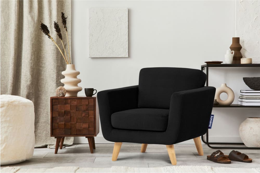 Skandinavischer Sessel, Massivholz-Beine, Schwarz von KONSIMO