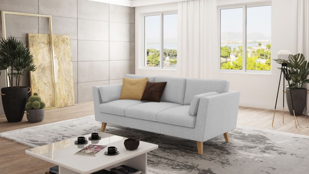 Skandinavisches Sofa 3-Sitzer aus Mikrofaser-Stoff, Silber von S-Style