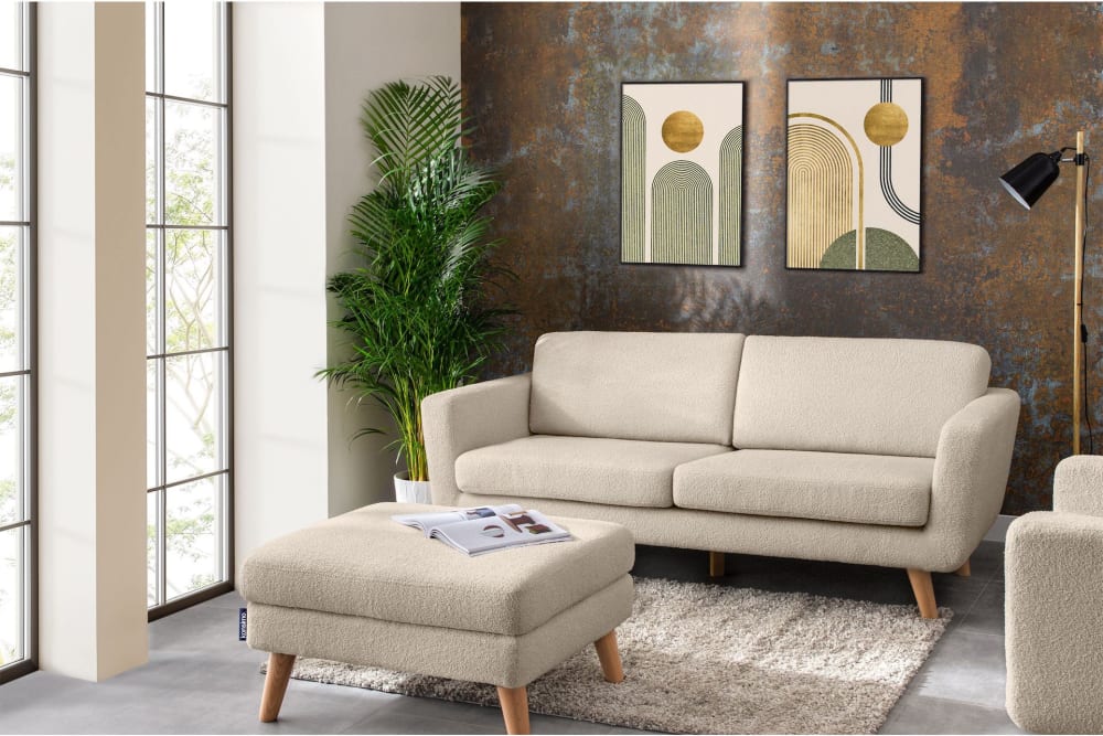 Die skandinavische Kollektion TAGIO ist aus hochwertigen Materialien gefertigt. Die Kollektion besteht aus Sofas in verschiedenen Größen, Sesseln, Ecksofas (rechts und links) und Poufs. Ein zusätzliches Merkmal der Möbel sind die Kissenbezüge, die mit einem ästhetisch verdeckten Reißverschlusstunnel versehen sind. Sie sind mit Velours- oder Bouclé-Oberstoff gepolstert, der sich unglaublich angenehm anfühlt und abrieb- und peelingfest ist. Dank dieser Eigenschaften ist das Sofa leicht sauber zu halten, was für jeden Nutzer ein besonderer Vorteil ist. Darüber hinaus besteht ihr Rahmen aus streng ausgewähltem Holz, dessen Feuchtigkeitsgehalt 12 % nicht überschreitet.