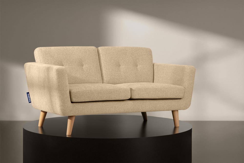 Das Zweisitzer-Sofa aus der TAGIO II-Kollektion ist die perfekte Wahl für alle, die Komfort, Stil und Qualität zu schätzen wissen. Dieses elegante Sofa ist mit einem hochwertigen Webstoff gepolstert, der nicht nur schön aussieht, sondern auch langlebig und pflegeleicht ist. Das Sofa ist in zwei Ausführungen erhältlich: mit einer Steppdecke auf dem Rückenkissen für minimalistischen Charme oder mit zwei Steppdecken, die dem Sofa einen einzigartigen Charakter verleihen. Sowohl das Rückenkissen als auch der Sitz sind dank der Verwendung von gewellten Federn, T30-Schaumstoff und hochelastischem HR30-Schaumstoff äußerst bequem. Diese Kombination garantiert eine hervorragende Rückenstütze und einen außergewöhnlich weichen Sitz. Die Rückenkissen sind mit T22- und T18-Schaum gefüllt, um Weichheit und Komfort beim Entspannen zu gewährleisten. Die Beine des Sofas bestehen aus massivem Buchenholz, das sorgfältig klar lackiert wurde und dem Sofa Eleganz und Stabilität verleiht. Hergestellt in der EU: Unsere Sofa aus der TAGIO II-Kollektion garantiert höchste Qualitätsstandards und lokale Handwerkskunst.