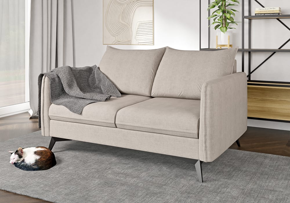 Sofa 2-Sitzer aus Mikrofaser-Stoff mit schwarzen Füßen, Beige von S-Style Möbel
