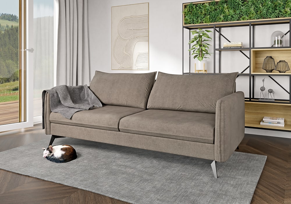 Sofa 3-Sitzer aus Mikrofaser-Stoff mit schwarzen Füßen, Beige von S-Style Möbel