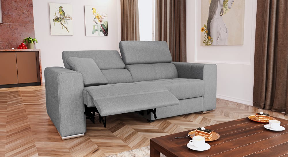 Sofa 3-Sitzer mit 1 Relaxfunktion und verstellbare Kopfstützen, grau