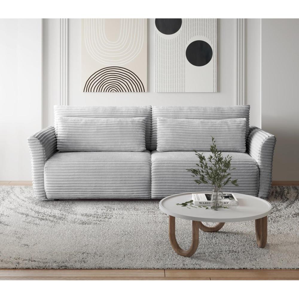 Sofa 3-Sitzer mit Schlaffunktion, Cord-Stoff, hellgrau von Beauty Sofa GmbH
