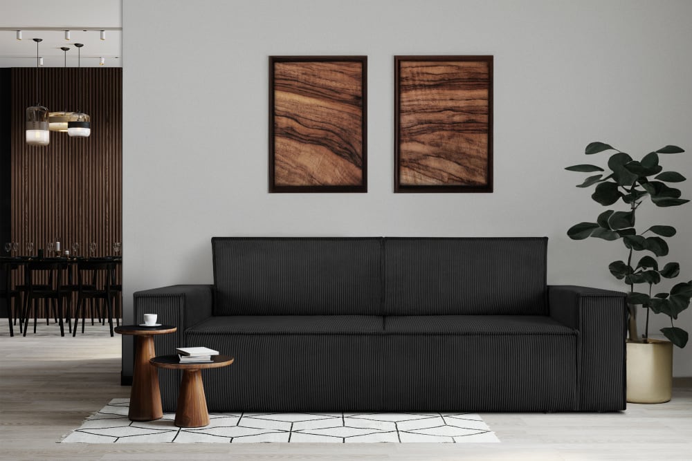 Sofa 3 Sitzer, mit Schlaffunktion, in Pet Friendly Cord-Stoff, Schwarz von KONSIMO