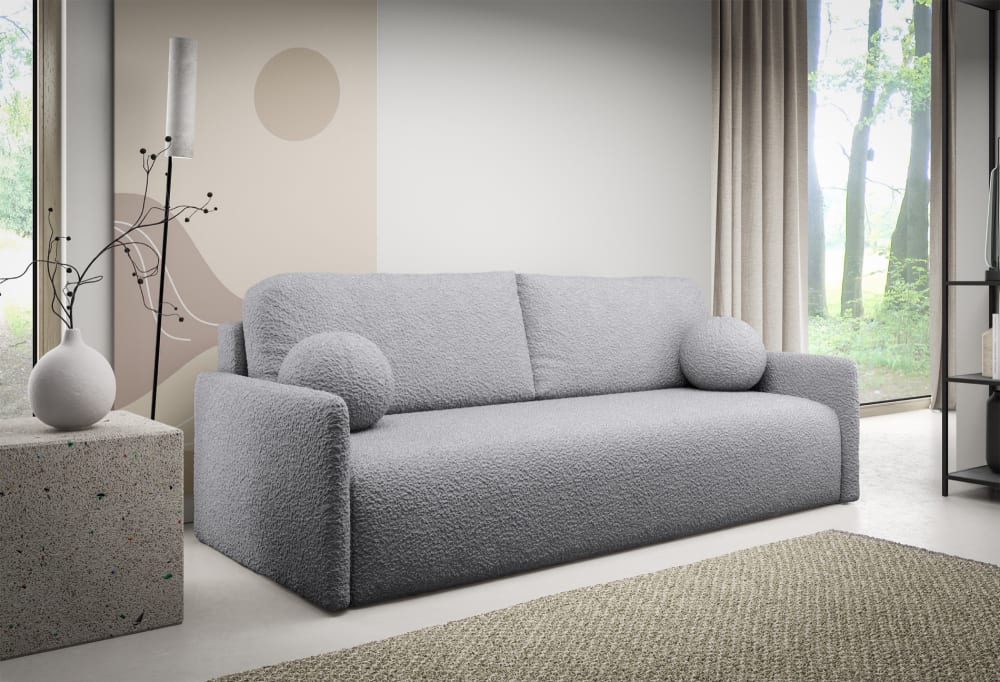 Sofa mit Schlaffunktion, Stauraum und Bouclé-Bezug, grau von Selsey