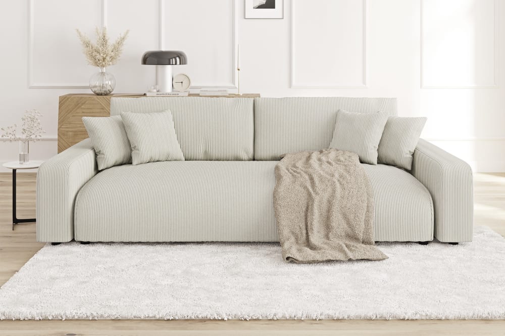 Sofa mit Schlaffunktion und Bettkasten aus Cord-Stoff, Beige von S-Style