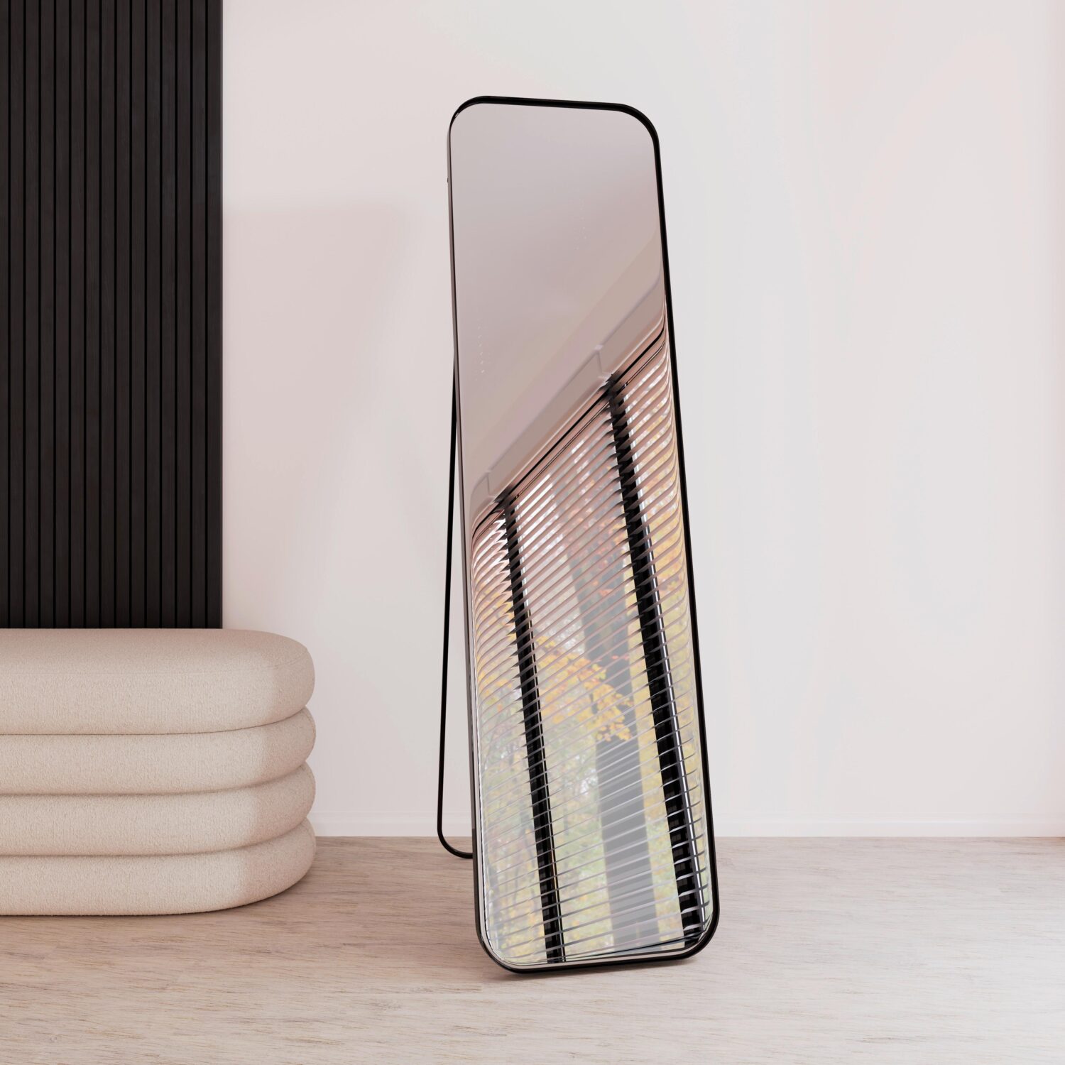 Setzen Sie ein elegantes Statement in Ihrem Wohn- oder Schlafzimmer mit diesem hochwertigen Standspiegel in Schwarz. Mit seinen großzügigen Maßen von ca. 41 x 154 x 68,5 cm (B/H/T) ist dieser Spiegel nicht nur ein praktischer Helfer im Alltag, sondern auch ein stilvolles Deko-Element für Ihr Zuhause. Produkt-Highlights im Überblick: Farbe: Klassisches Schwarz – zeitlos & modern Material: Robustes Metallgestell aus pulverbeschichtetem, lackiertem Eisen, kombiniert mit edlem Spiegelglas Rahmen: ca. 4 cm breiter Metallrahmen, rostfrei & langlebig Standfuß: Sicherer & stabiler Stand – ganz ohne Bohren Lieferung: Montiert geliefert – sofort einsatzbereit Der elegante Rahmen aus rostfreiem Met
