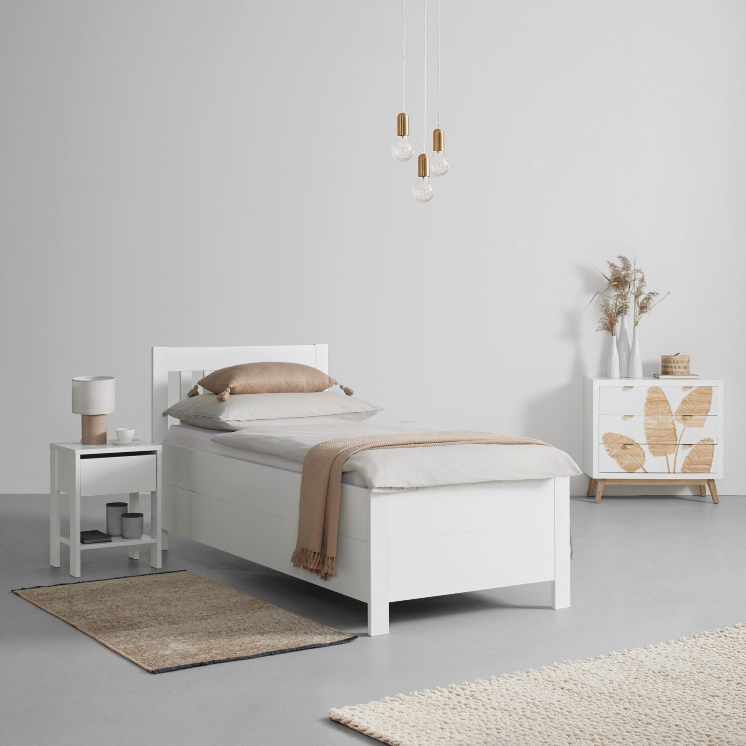 Das Stauraumbett NIZZA in Weiß bietet zusätzlichen Platz im Schlafzimmer. Das Bett der Marke ZANDIARA mit einer Liegefläche von ca. 90 x 200 cm überzeugt durch sein schlichtes Design und seine Funktionalität. Das Bettgestell ist mit einem Lacklaminat überzogen und wirkt dadurch besonders edel. Zwei Bettladen bieten praktischen Stauraum für Bettwäsche, Kissen oder andere Utensilien. Die maximale Belastbarkeit beträgt ca. 130 kg. Die Gesamtbreite beträgt ca. 100 cm, die Gesamtlänge ca. 205 cm und die Gesamthöhe ca. 102 cm. Die Bettrahmenhöhe liegt bei ca. 55 cm. Das Kopfteil ist ca. 100 cm breit und ca. 102 cm hoch. HINWEIS