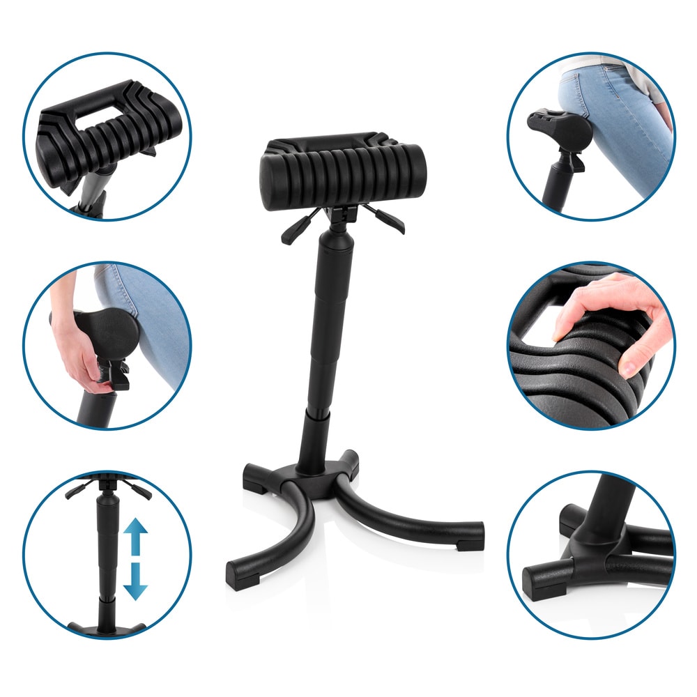 Die Stehhilfe TOP WORK 33 macht ergonomisches Arbeiten flexibel und mobil. Viele Arbeiten erfordern langes und ermüdendes Stehen. Ein Stehhocker entlastet die Beine, schont den Rücken und beugt Verspannungen und Haltungsschäden vor. Der robust verarbeitete Stuhl ist einfach in der Höhe verstellbar und kann so an die individuelle Körpergröße angepasst werden. Die spezielle Sitzfläche ist nicht nur elegant designt, sondern auch bequem. Dank integriertem Griff ist der Transport kein Problem.