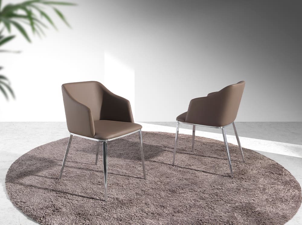 Öko-Lederstuhl braun modell 4022 Angel Cerdá S.L.Stuhl mit Armlehnen in modernem Design, Sitz und Rückenlehne mit braunem Kunstleder gepolstert. Seine verchromten Edelstahlbeine mit einem avantgardistischen und doch zeitlosen Stil machen ihn zu einem Must-Have für Ihre Küche oder Ihr Esszimmer. Dieser Stuhl von Angel Cerdá vereint den einzigartigen und persönlichen Stil der Marke mit höchstem Komfort und Stabilität, dank der hohen Qualität seiner Polsterung und der originellen Struktur seiner Beine.Abmessungen des Produkts: 51 x 56 x 79 cm.- Dank der Kunstlederpolsterung dieses Esszimmerstuhls erhalten Sie den unverwechselbaren und anderen Touch, den Sie für Ihren Essbereich suchen. – Die originelle Ausführung der Beine aus verchromtem Stahl sorgt für Helligkeit und Modernität und fördert das Gefühl von Großzügigkeit im Raum. – Sein vielseitiges und funktionelles Design macht ihn zu einem idealen Stuhl für jede Art von Wohnzimmer, Esszimmer oder Küche. – Die Größe seines Sitzes und seine 25kg/m3 Polyurethanschaum-Polsterung sowie seine anschmiegsame Rückenlehne ermöglichen es Ihnen, maximalen Komfort zu genießen.