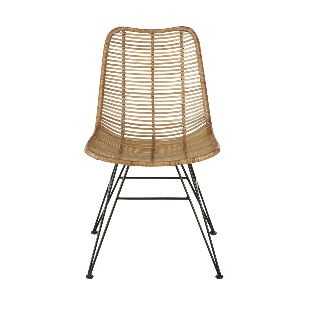 Stuhl aus Rattangeflecht und schwarzem Stahl von Maisons du Monde