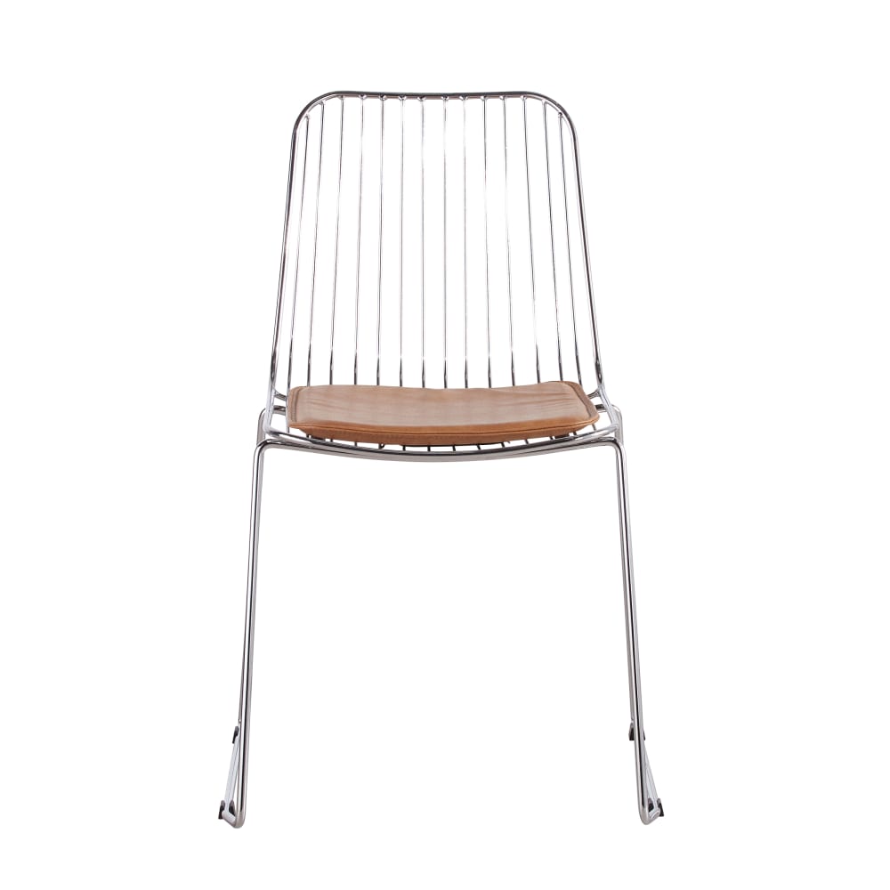 Stuhl aus verchromtem Stahl und braunes Kissen in Antiklederoptik von Maisons du Monde