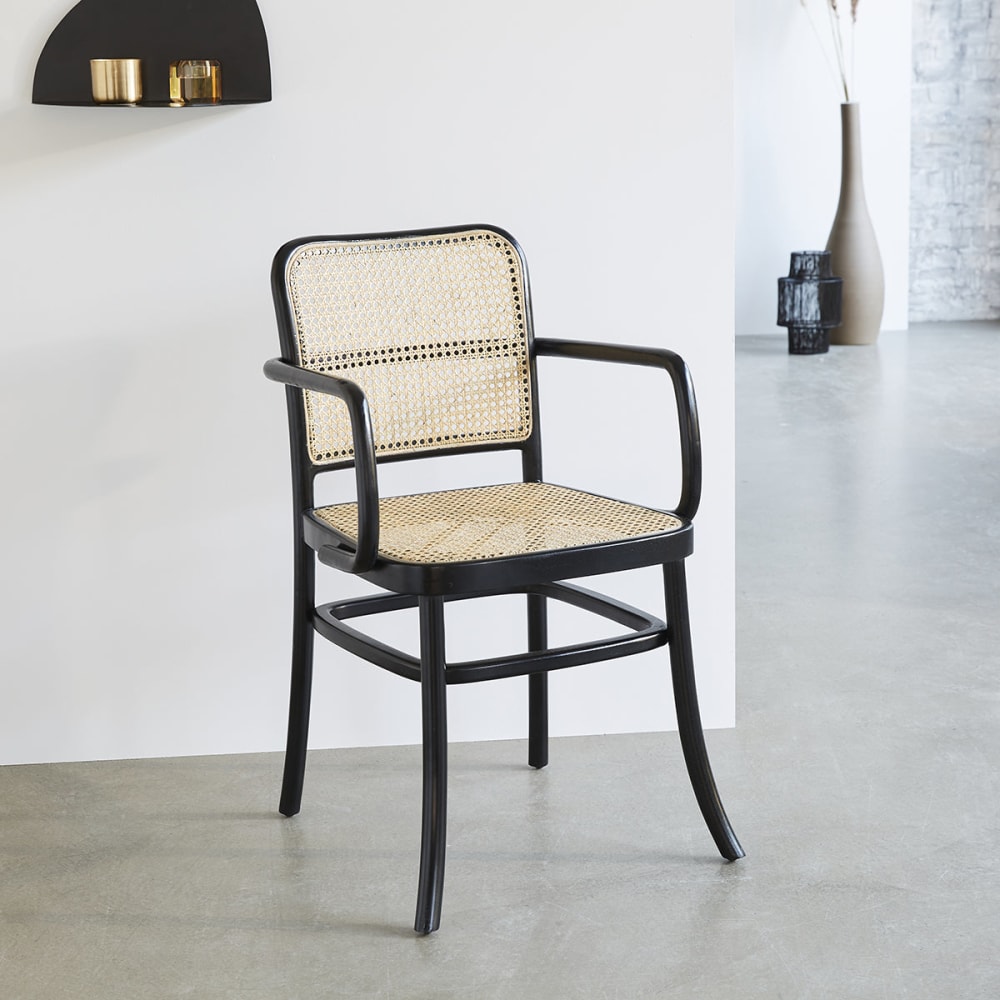 Stuhl mit Armlehnen aus massivem Mahagoni und Rohrgeflecht von BERAH GETAH