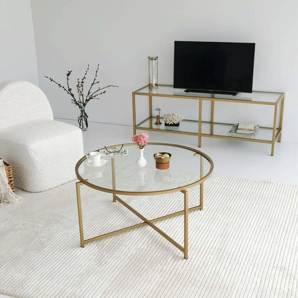 Wohnzimmertisch im Glas gold 85×85 cm 85x35x85cm Metall Gold Dmora Möbel Wohnzimmermöbel Couchtische