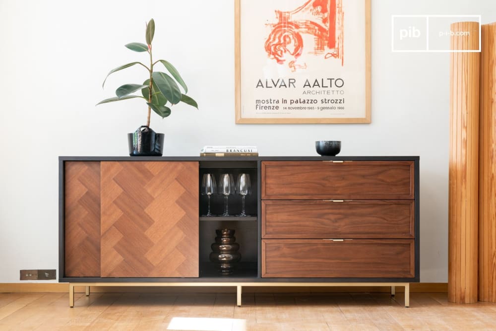 Sideboard aus dunklem Holz mit Schiebetüren und 3 Schubladen 180x76x45cm Holz Braun PIB Möbel Schlafzimmermöbel Kommoden