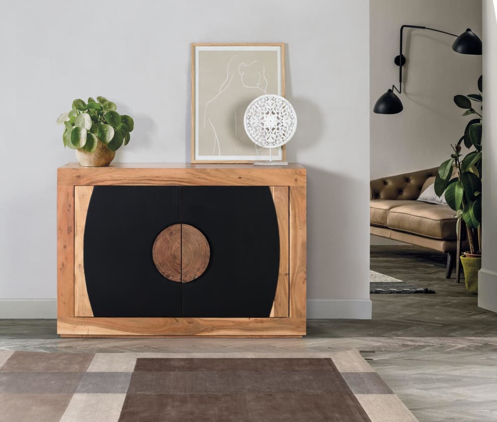 Sideboard aus Akazienholz mit 2 Türen 110x75x40cm Holz Braun GINER Y COLOMER Möbel Esszimmermöbel Sideboards, Highboards & niedrige Anrichten