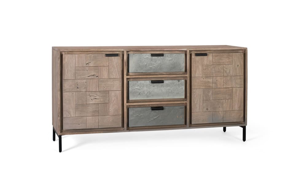 Sideboard aus Akazienholz und Metall 175x81x45cm Holz Braun GINER Y COLOMER Möbel Esszimmermöbel Sideboards, Highboards & niedrige Anrichten