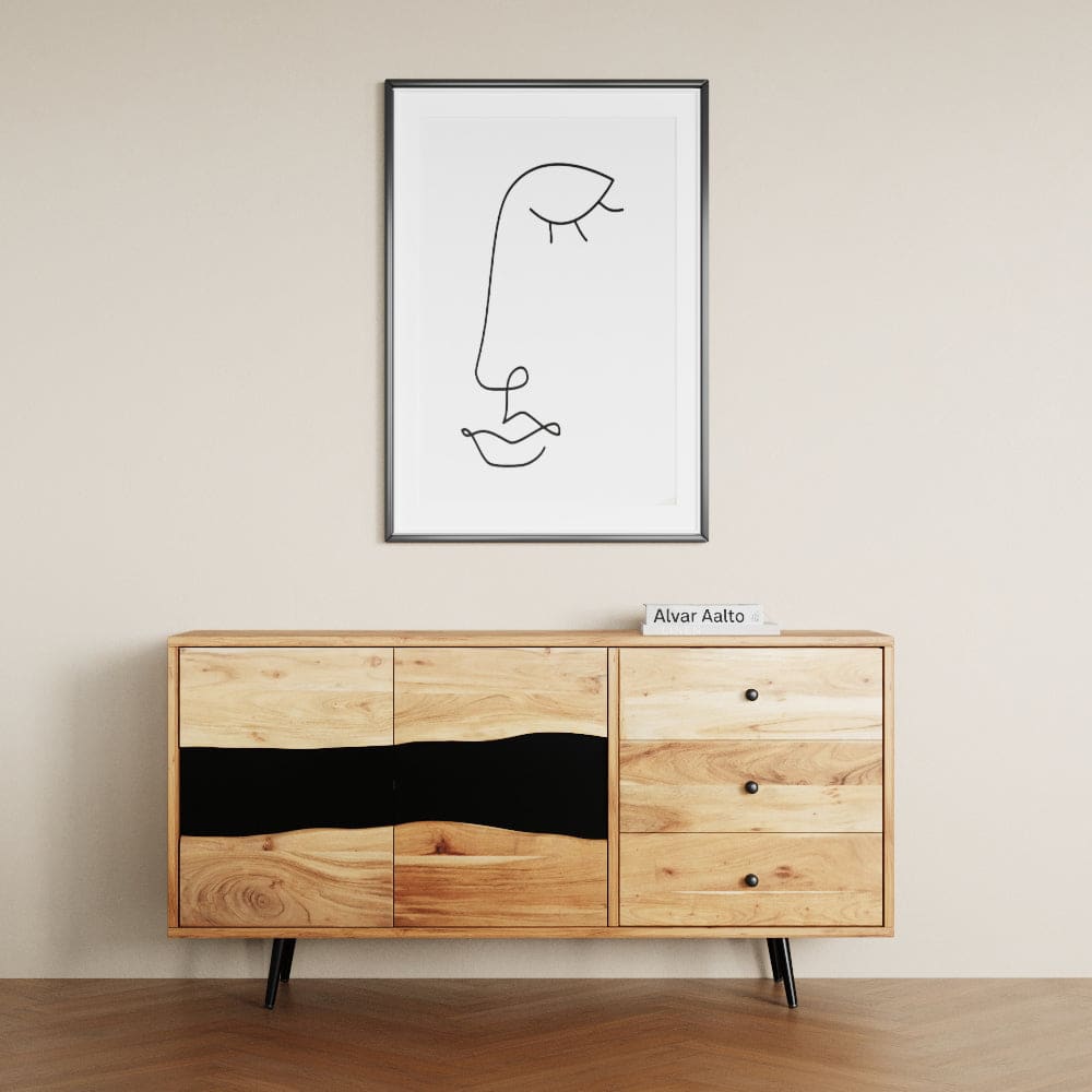 Sideboard aus massivem Akazienholz, natürlichem Design und Glas 130x147x45cm Holz Braun GINER Y COLOMER Möbel Esszimmermöbel Sideboards, Highboards & niedrige Anrichten