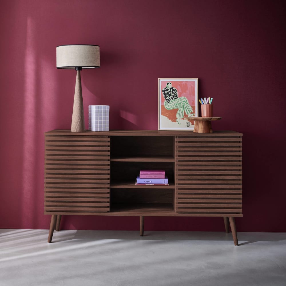 Sideboard Holzdekor Nussbaum 2 Schiebetüren B 140 140x79x39cm Spanplatte Braun sweeek Möbel Esszimmermöbel Sideboards, Highboards & niedrige Anrichten