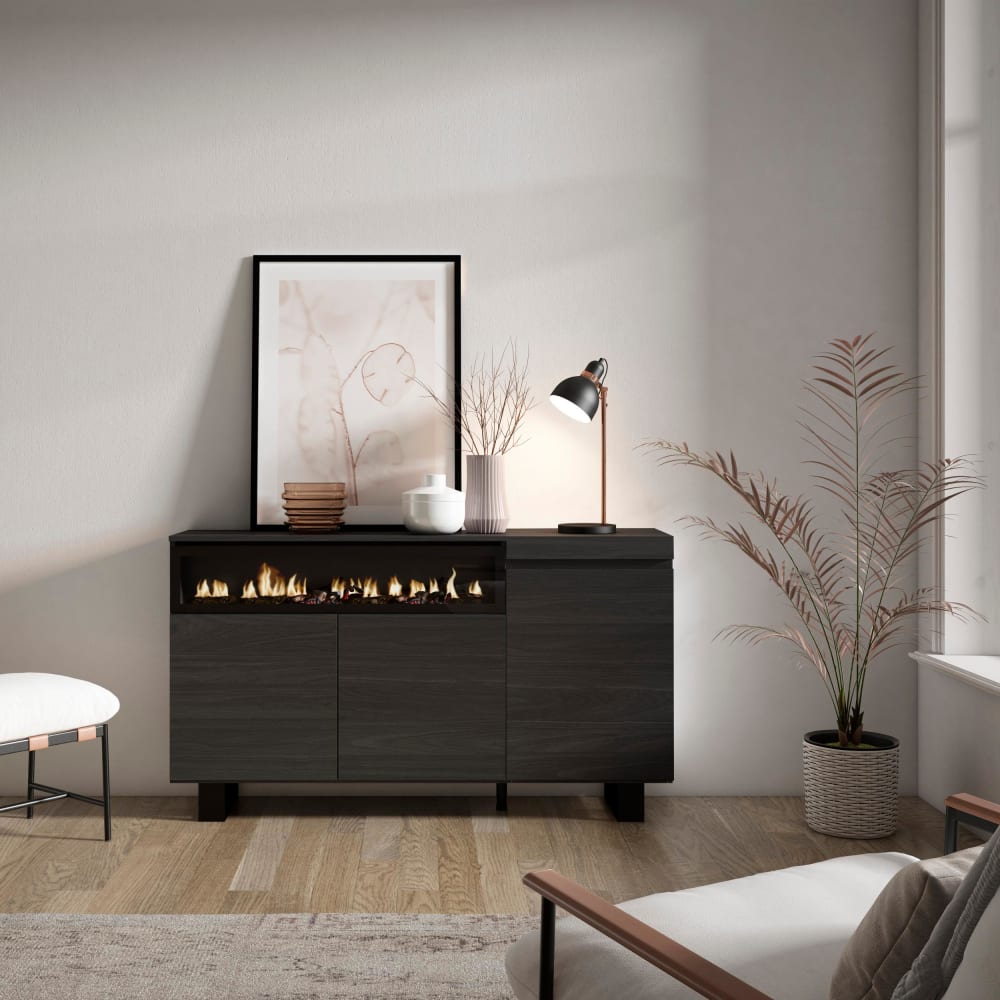 Sideboard Holzeffekt Kamin mit Feuereffekt 150x35x87cm Schwarz 150x87x35cm Spanplatte Schwarz Skraut home Möbel Esszimmermöbel Sideboards, Highboards & niedrige Anrichten