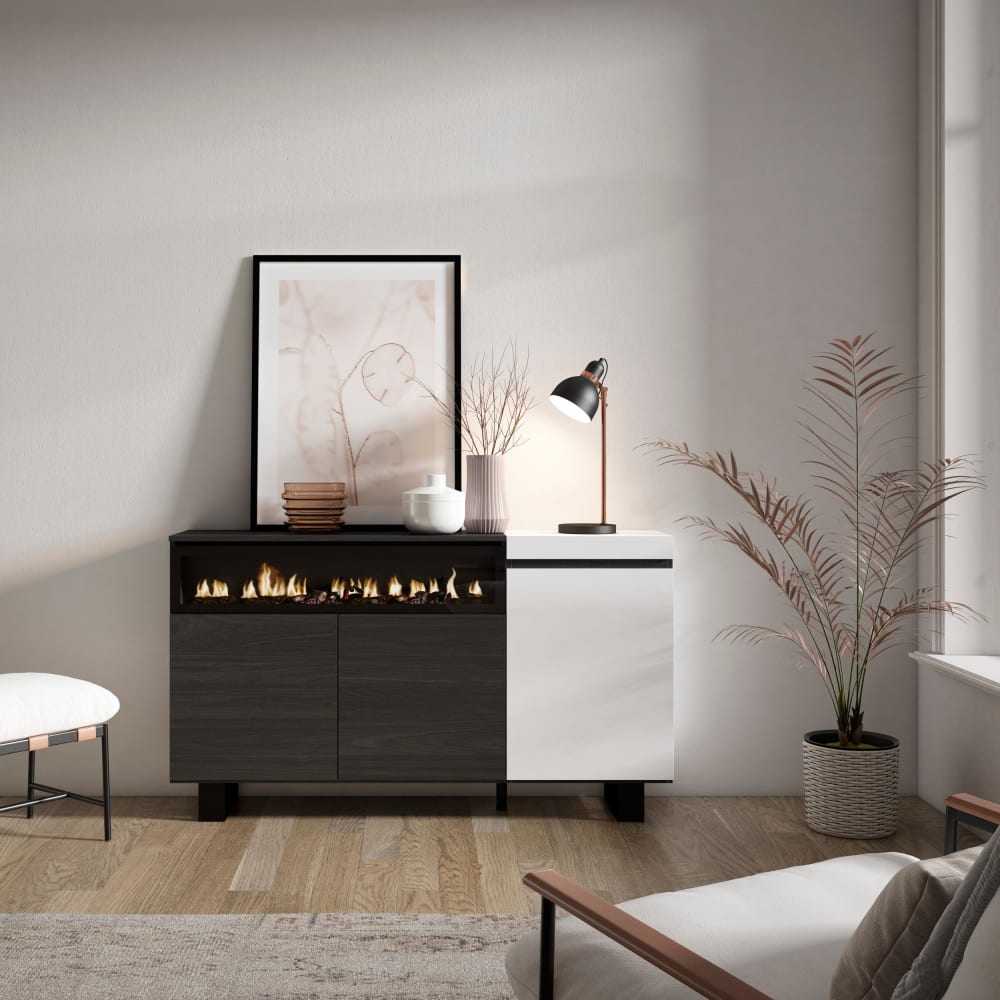 Sideboard Holzeffekt Kamin mit Feuereffekt 150x35x87 Weiß und Schwarz 150x87x35cm Spanplatte Weiß Skraut home Möbel Esszimmermöbel Sideboards, Highboards & niedrige Anrichten