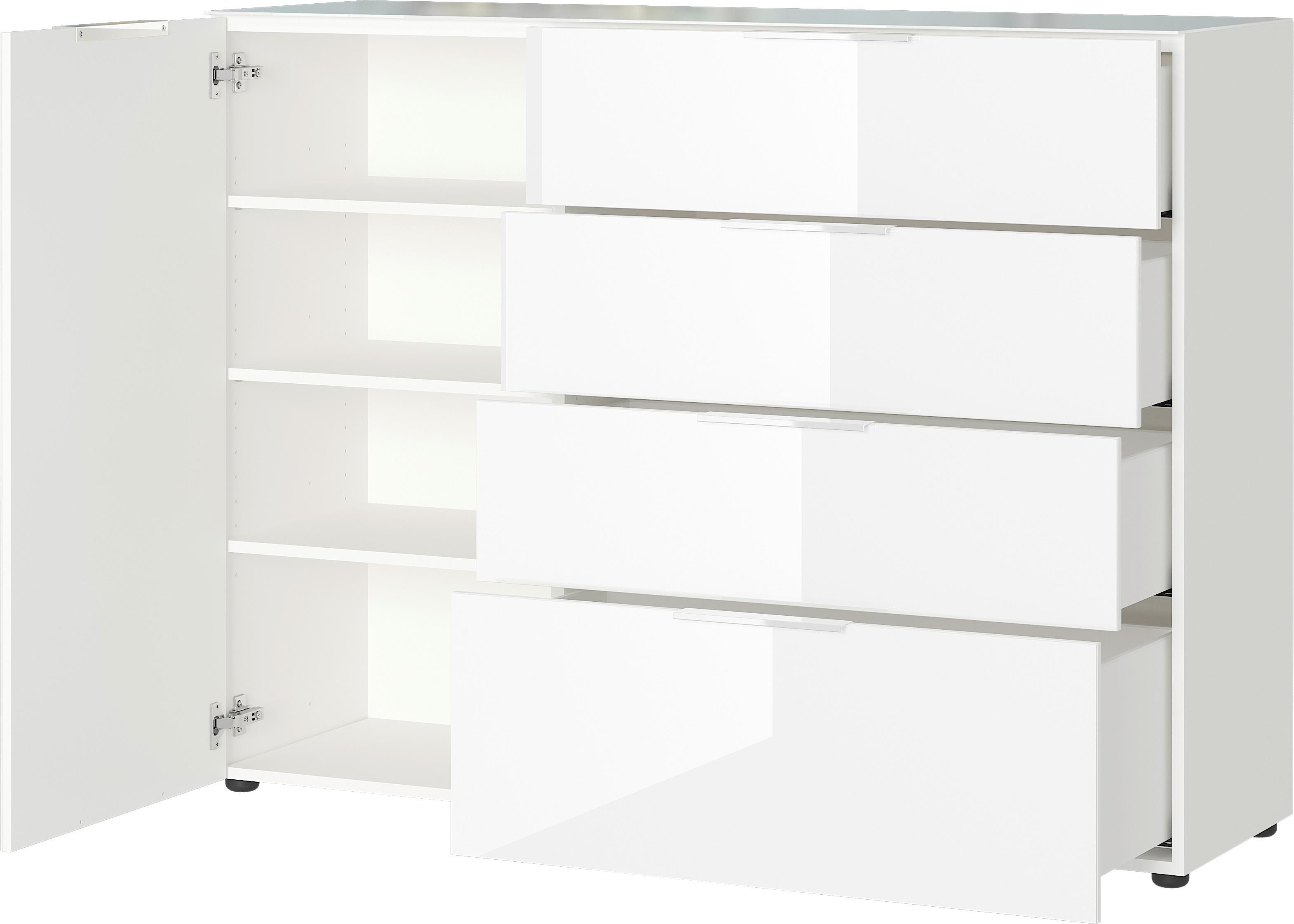 Sideboard Oakland in Weiß Glas, Holzwerkstoff Premium Living Wohnzimmermöbel Weiß