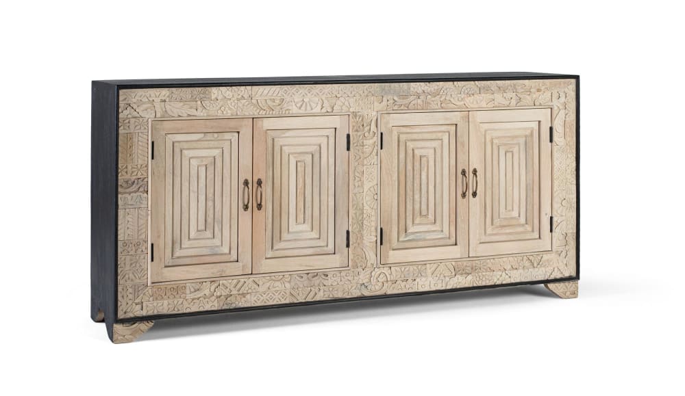 Sideboard mit vier Türen und handgeschnitzten Details 195cm 195x95x41cm Holz Weiß GINER Y COLOMER Möbel Esszimmermöbel Sideboards, Highboards & niedrige Anrichten