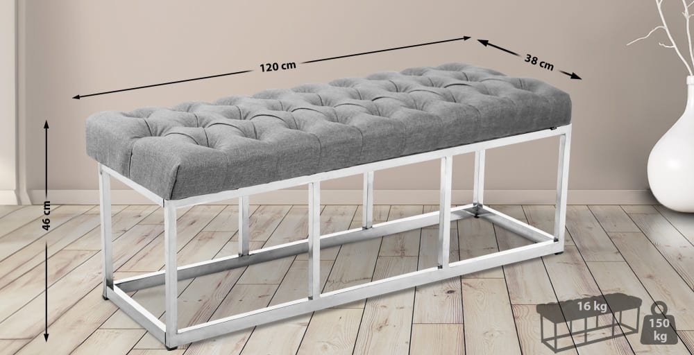 Sitzbank mit Edelstahlgestell Ploster aus Stoff grau 38x46x120cm Stoff Grau CLP Möbel Esszimmermöbel Sitzbank und Holzbank