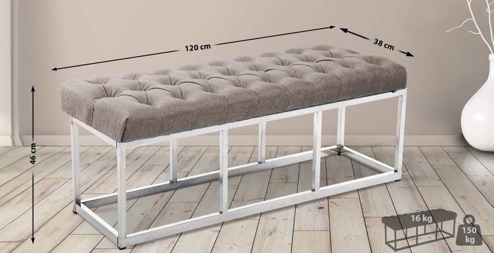 Sitzbank mit Edelstahlgestell Ploster aus Stoff taupe 38x46x120cm Stoff Taupe CLP Möbel Esszimmermöbel Sitzbank und Holzbank