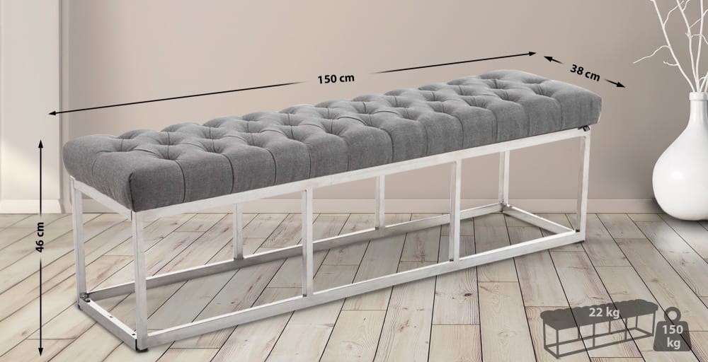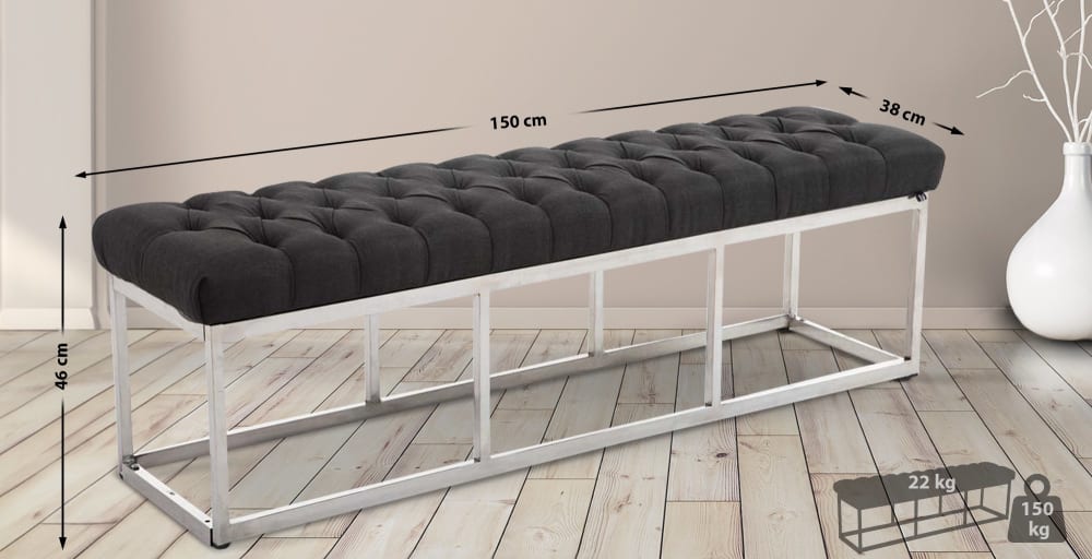 Sitzbank mit Edelstahlgestell Ploster aus Stoff dunkelgrau 38x46x150cm Stoff Grau CLP Möbel Esszimmermöbel Sitzbank und Holzbank