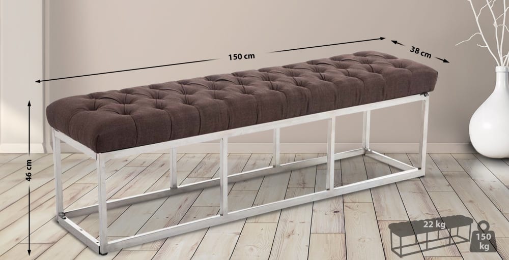 Sitzbank mit Edelstahlgestell Ploster aus Stoff braun 38x46x150cm Stoff Braun CLP Möbel Esszimmermöbel Sitzbank und Holzbank