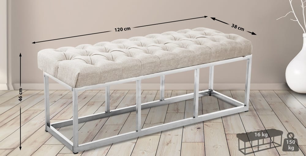 Sitzbank mit Edelstahlgestell Ploster aus Stoff creme 38x46x120cm Stoff Beige CLP Möbel Esszimmermöbel Sitzbank und Holzbank
