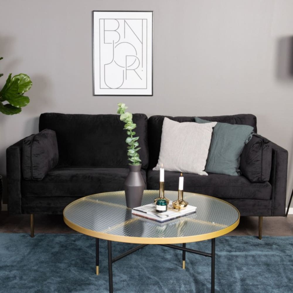 Sofa Calais ca. 180 cm Schwarz Samt Metall, Textil Livetastic Wohnzimmermöbel Schwarz