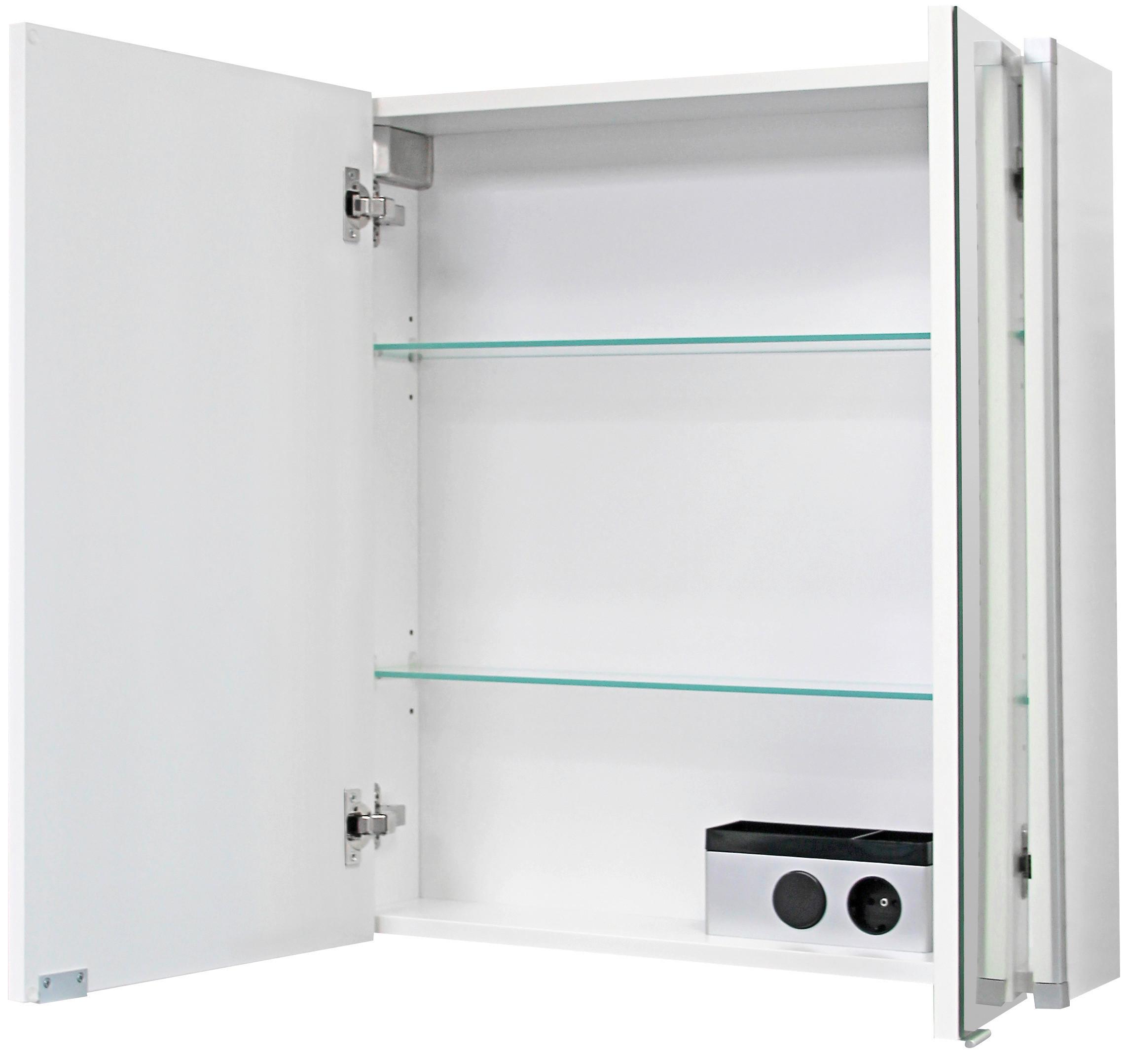 Spiegelschrank LED-Line 2 türig ca. 61×67 cm Weiß Glas, Holzwerkstoff MID.YOU Spiegel Weiß