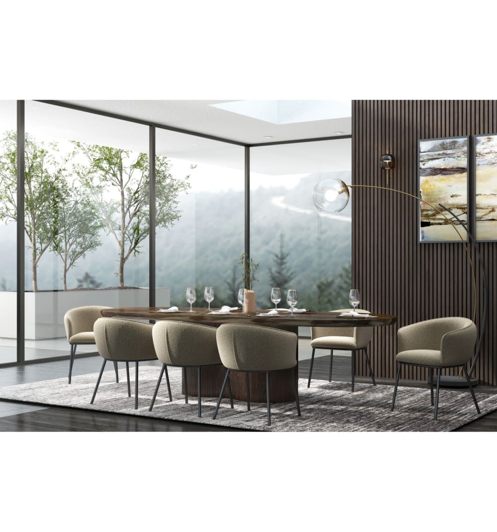 Tischsessel aus Bouclé- Greige- Stoff und schwarzem Metall 60x76x63cm Stoff Beige Moloo Möbel Esszimmermöbel Stühle