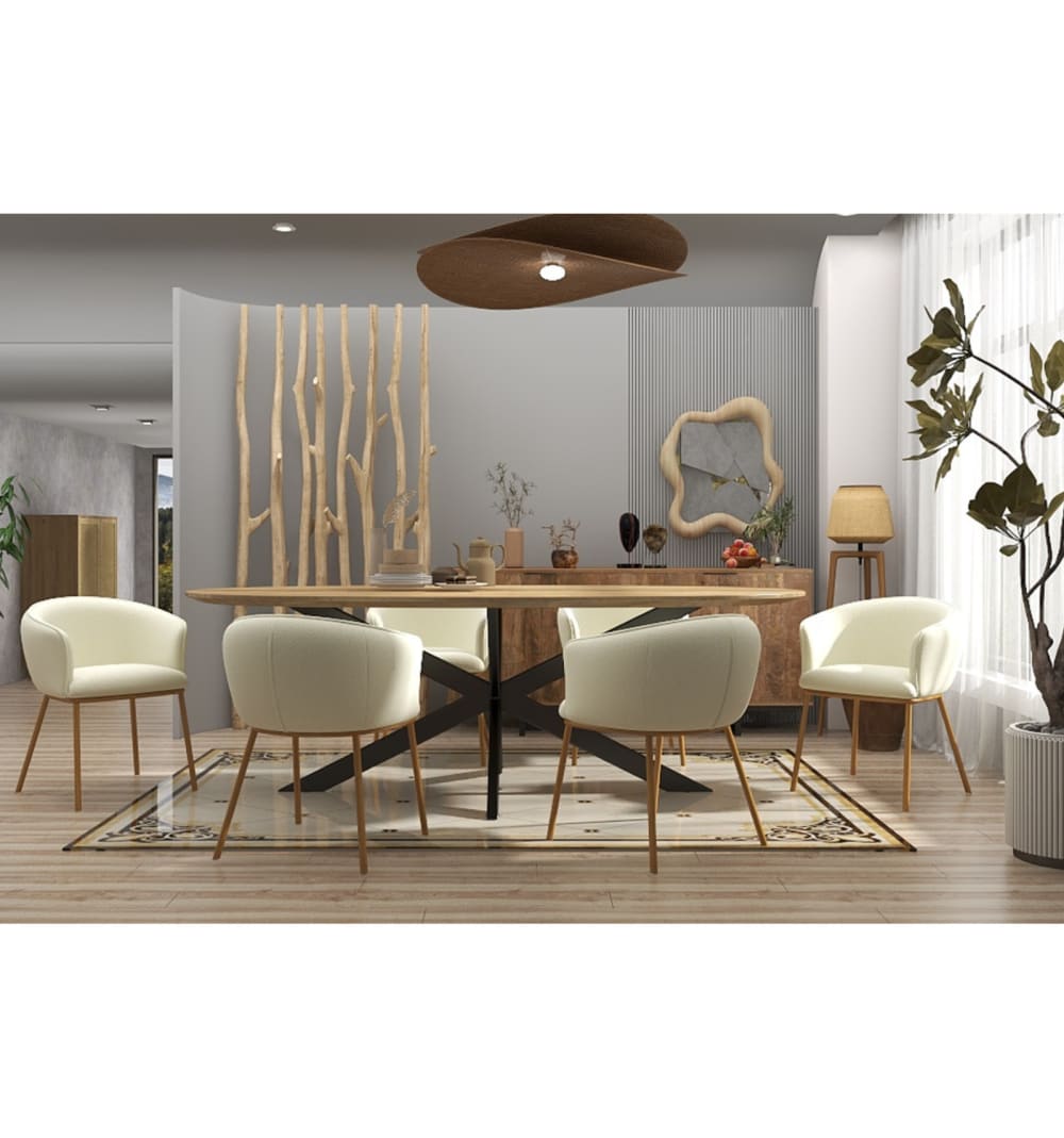 Tischsessel aus Bouclé-Ecru-Stoff und Eichenmetall 60x76x63cm Stoff Weiß Moloo Möbel Esszimmermöbel Stühle