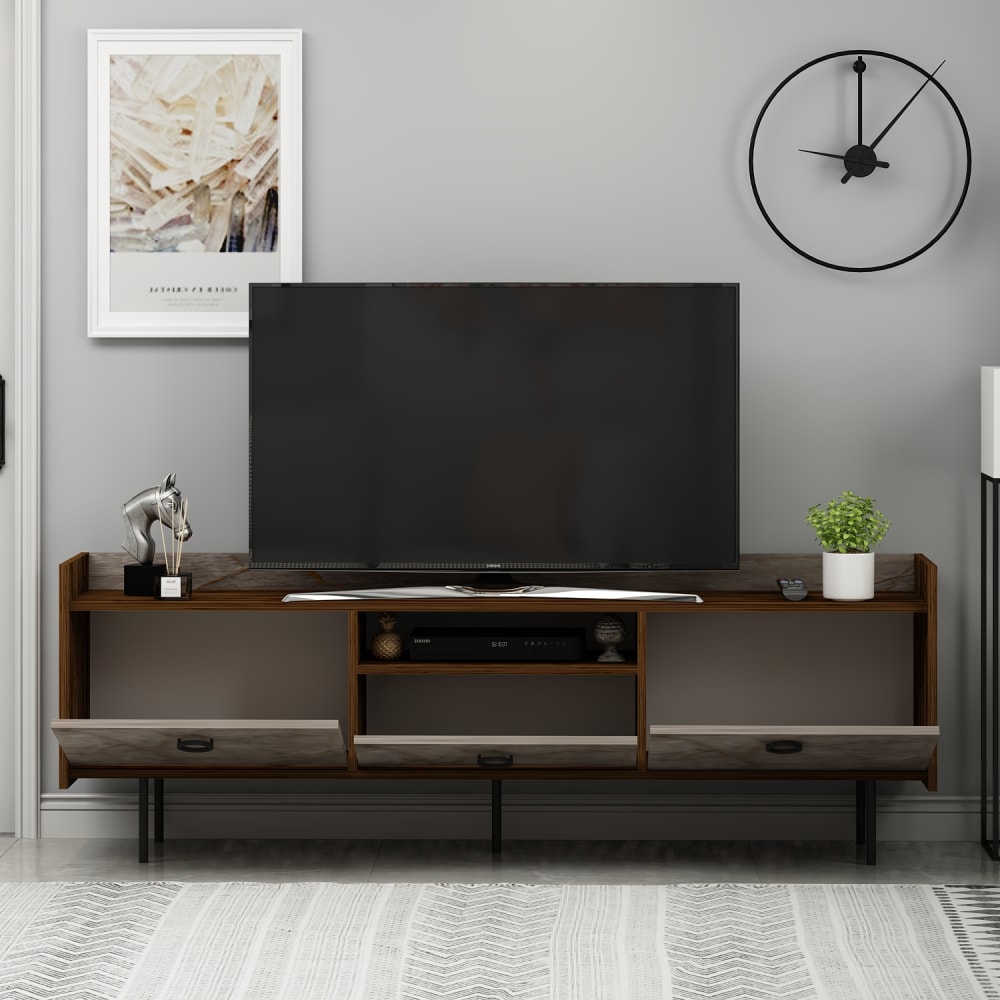 TV-Möbel 3-Türig Holz stehend mit Metallfüße 37x45x157cm Spanplatte Grau moebel17 Möbel Wohnzimmermöbel TV-Möbel
