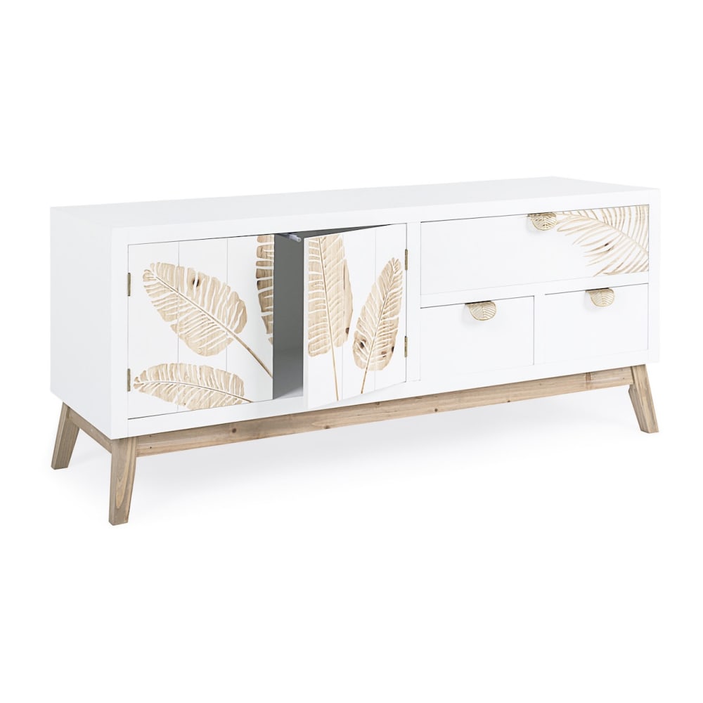 TV-Möbel aus Holz mit Türen und Schubladen 120x52x40cm Holz Weiß Mathi Design Möbel Wohnzimmermöbel TV-Möbel