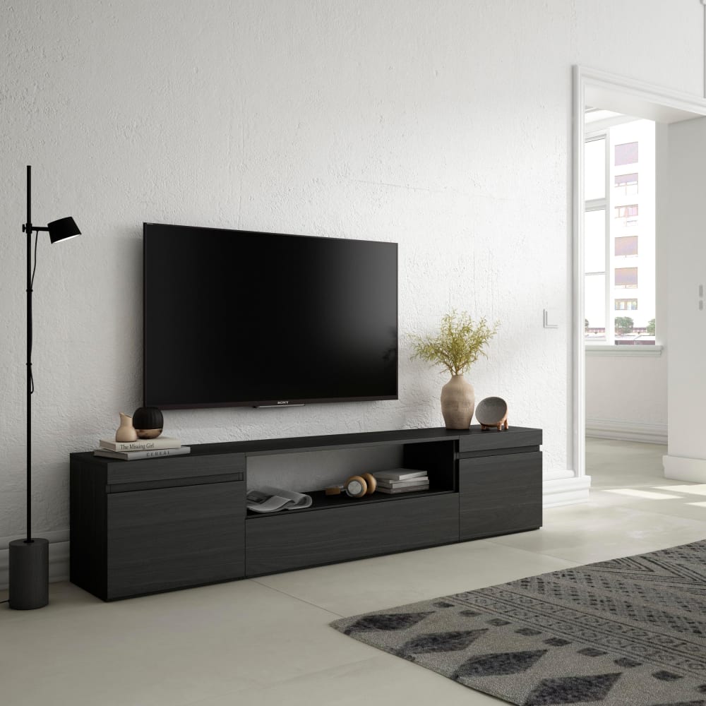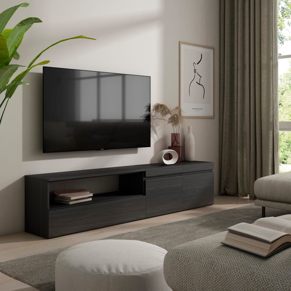 TV-Möbel Holzeffekt 200x35x45cm Schwarz 200x45x35cm Spanplatte Schwarz Skraut home Möbel Wohnzimmermöbel TV-Möbel