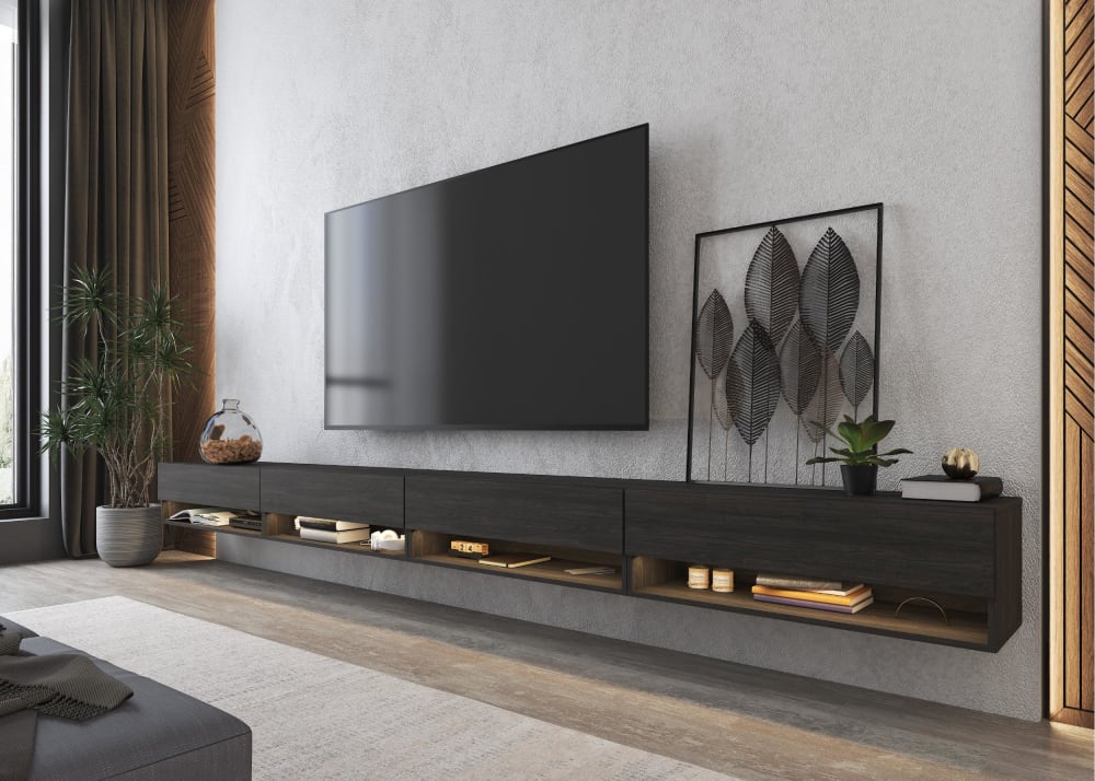 TV-Möbel Holzeffekt 360x34x30cm Schwarz 360x30x34cm Spanplatte Schwarz Skraut home Möbel Wohnzimmermöbel TV-Möbel