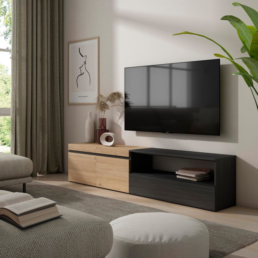 TV-Möbel Holzeffekt 200x35x45cm Eiche und Schwarz 200x45x35cm Spanplatte Beige Skraut home Möbel Wohnzimmermöbel TV-Möbel
