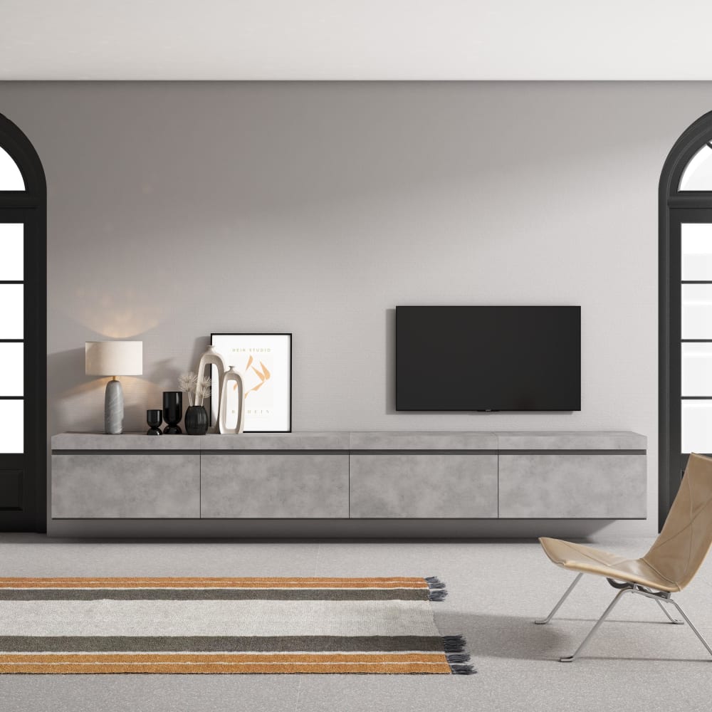 TV-Möbel Holzeffekt Hängend 320x35x45cm Zementgrau 320x45x35cm Spanplatte Grau Skraut home Möbel Wohnzimmermöbel TV-Möbel