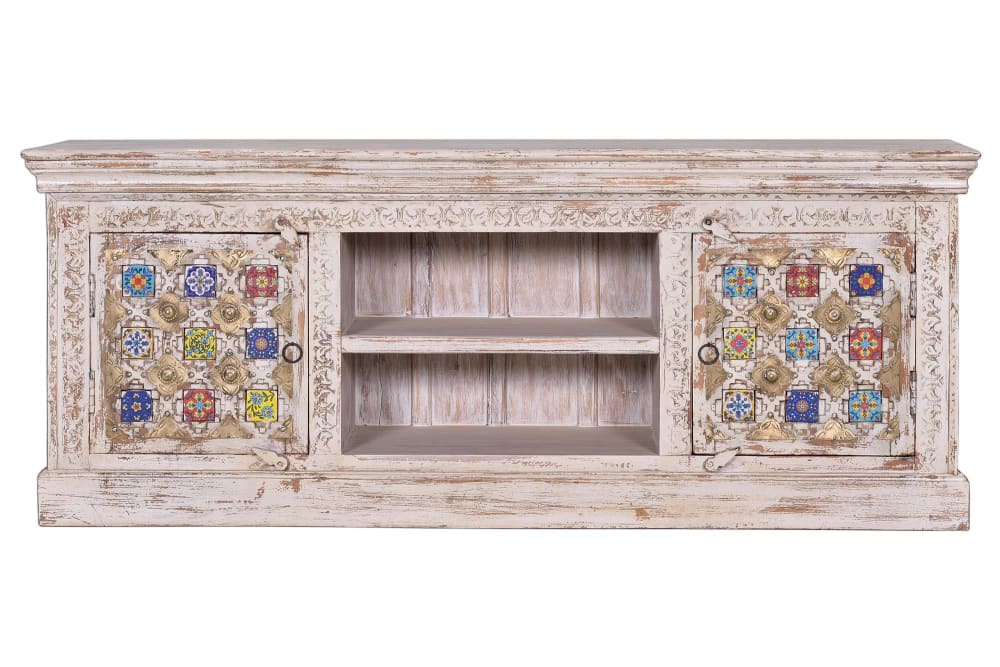 TV-Schrank aus Holz mit Keramikdetails 150x60x40cm Holz Weiß GINER Y COLOMER Möbel Wohnzimmermöbel TV-Möbel