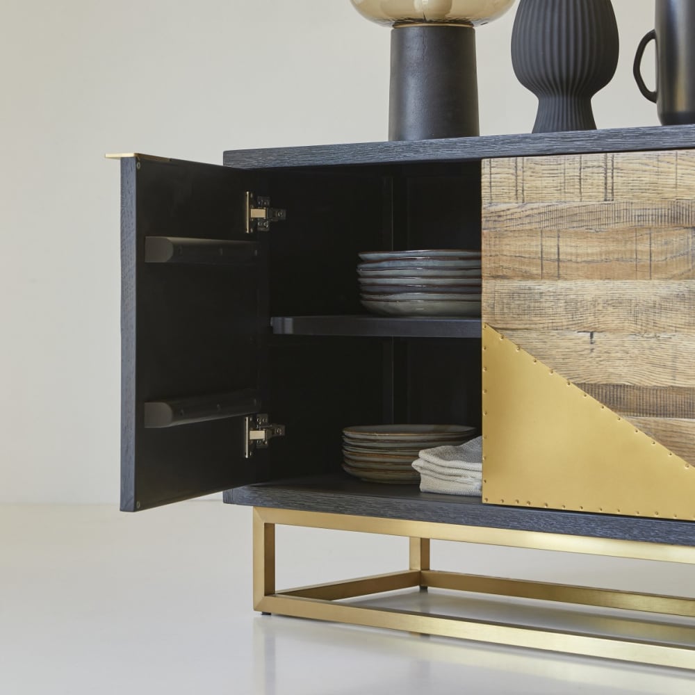 TV-Schrank aus gealtertem braunem Mangoholz und Metall 170x55x40cm Holz Braun GINER Y COLOMER Möbel Wohnzimmermöbel TV-Möbel
