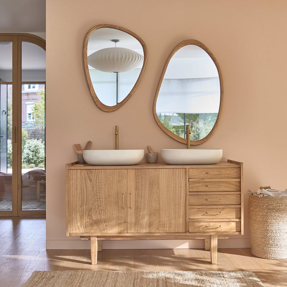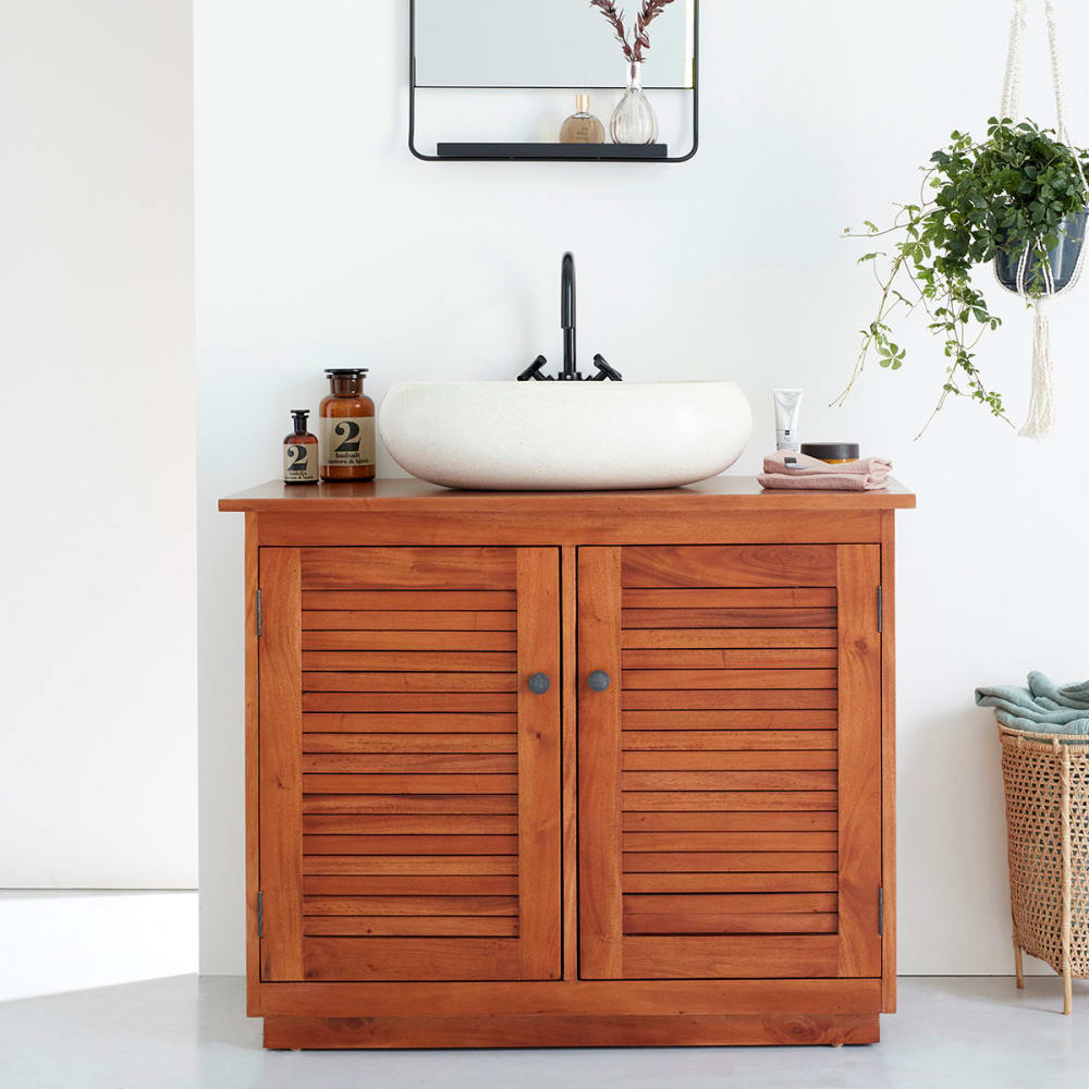 Waschtischunterschrank aus massivem Akazie 90 cm 90x78x45cm Holz Beige Tikamoon Möbel Badezimmermöbel Badezimmerschränke