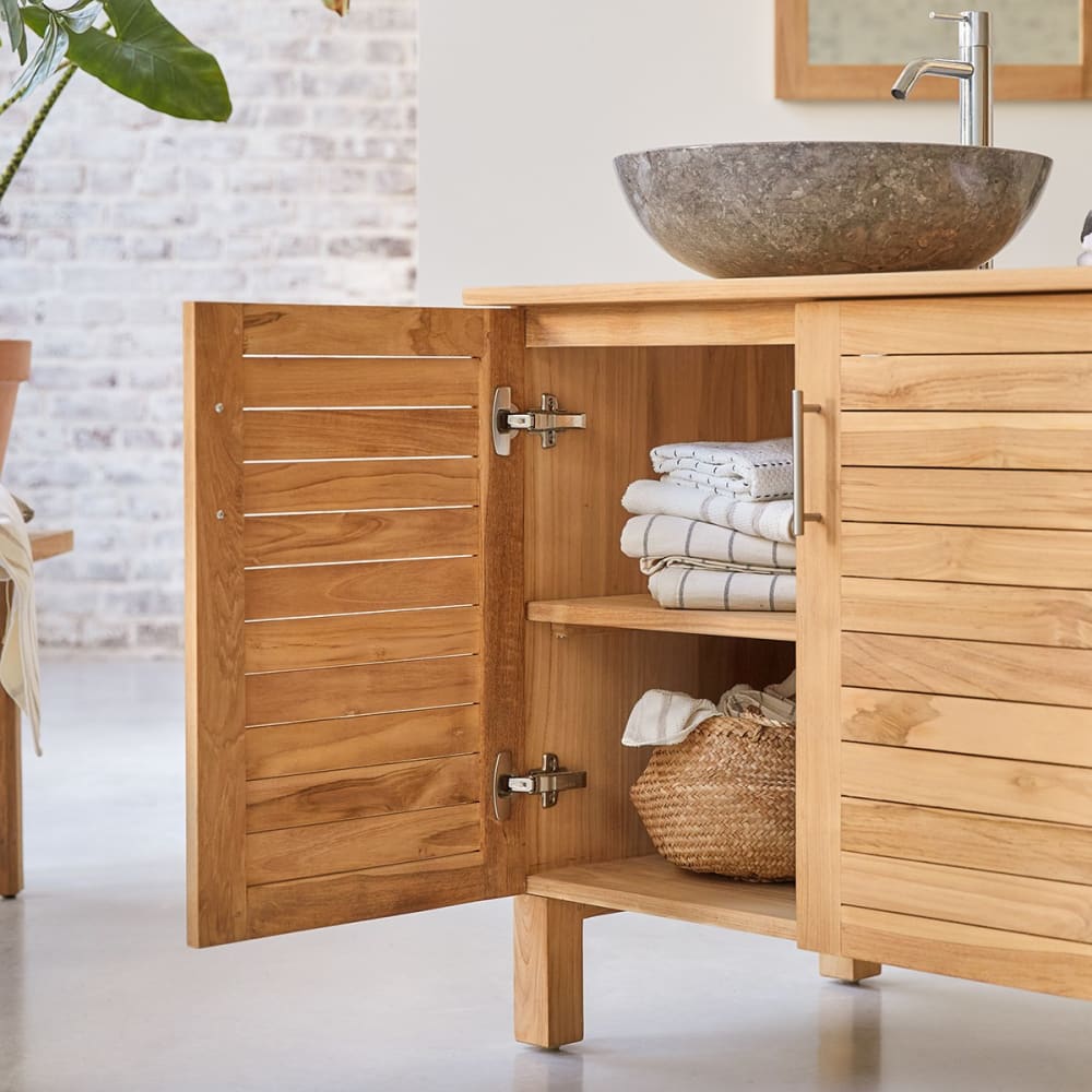 Waschtischunterschrank aus massivem Teakholz 95 cm 94x80x55cm Holz Beige Tikamoon Möbel Badezimmermöbel Badezimmerschränke