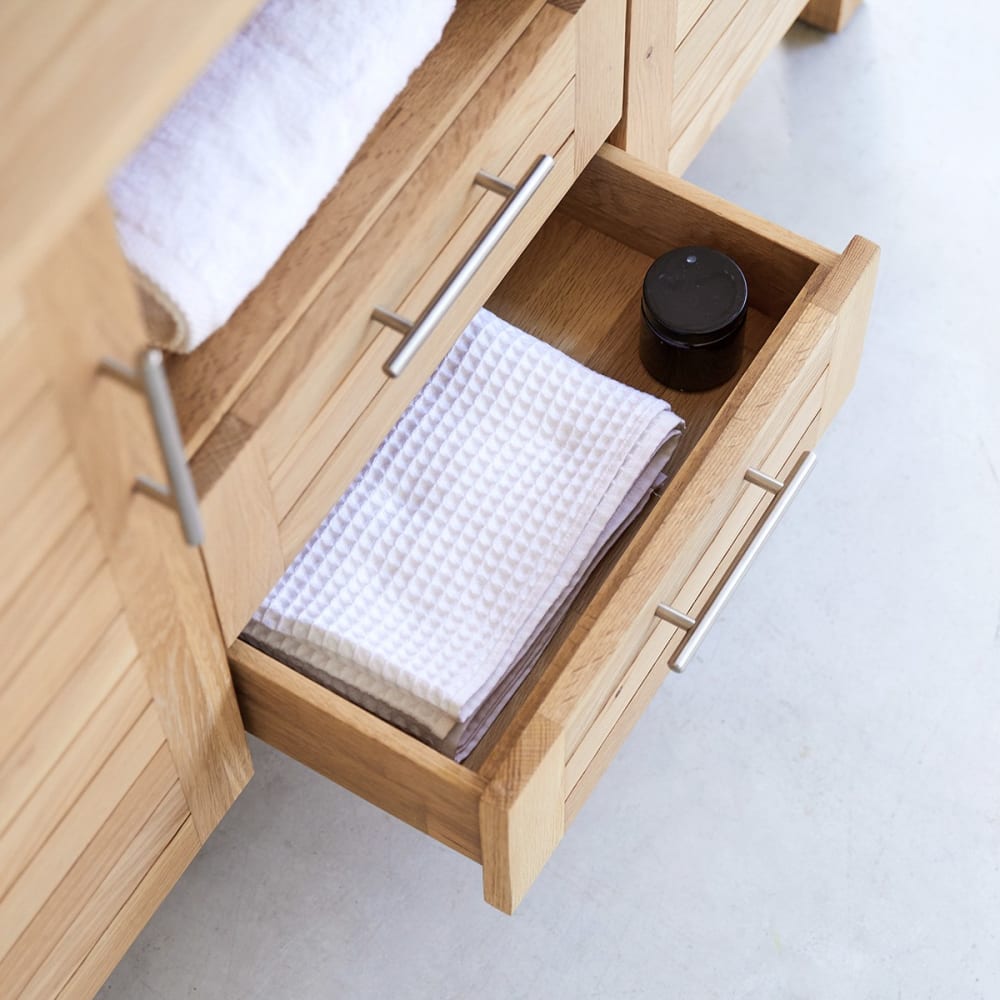 Waschtischunterschrank aus massiver Eiche 145 cm 145x80x50cm Holz Braun Tikamoon Möbel Badezimmermöbel Waschtische