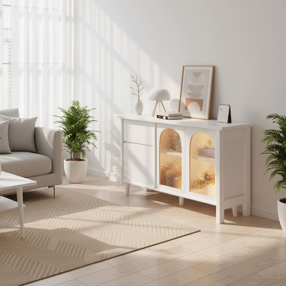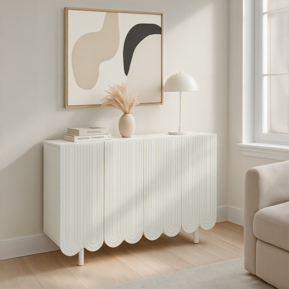 Weiße Konsole mit 3 gewellten Türen 120x81x38cm Spanplatte Weiß Urban Meuble Möbel Wohnzimmermöbel Konsolentische